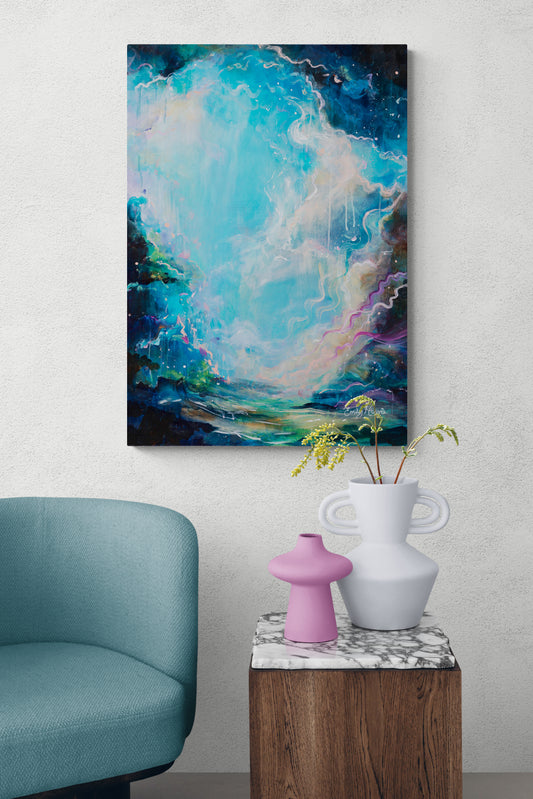 Created with love in my home studio in Wales, every art piece reflects years of experimentation and inspiration. My original paintings have found homes with collectors across the globe, and I hope they bring joy and inspiration to you too.